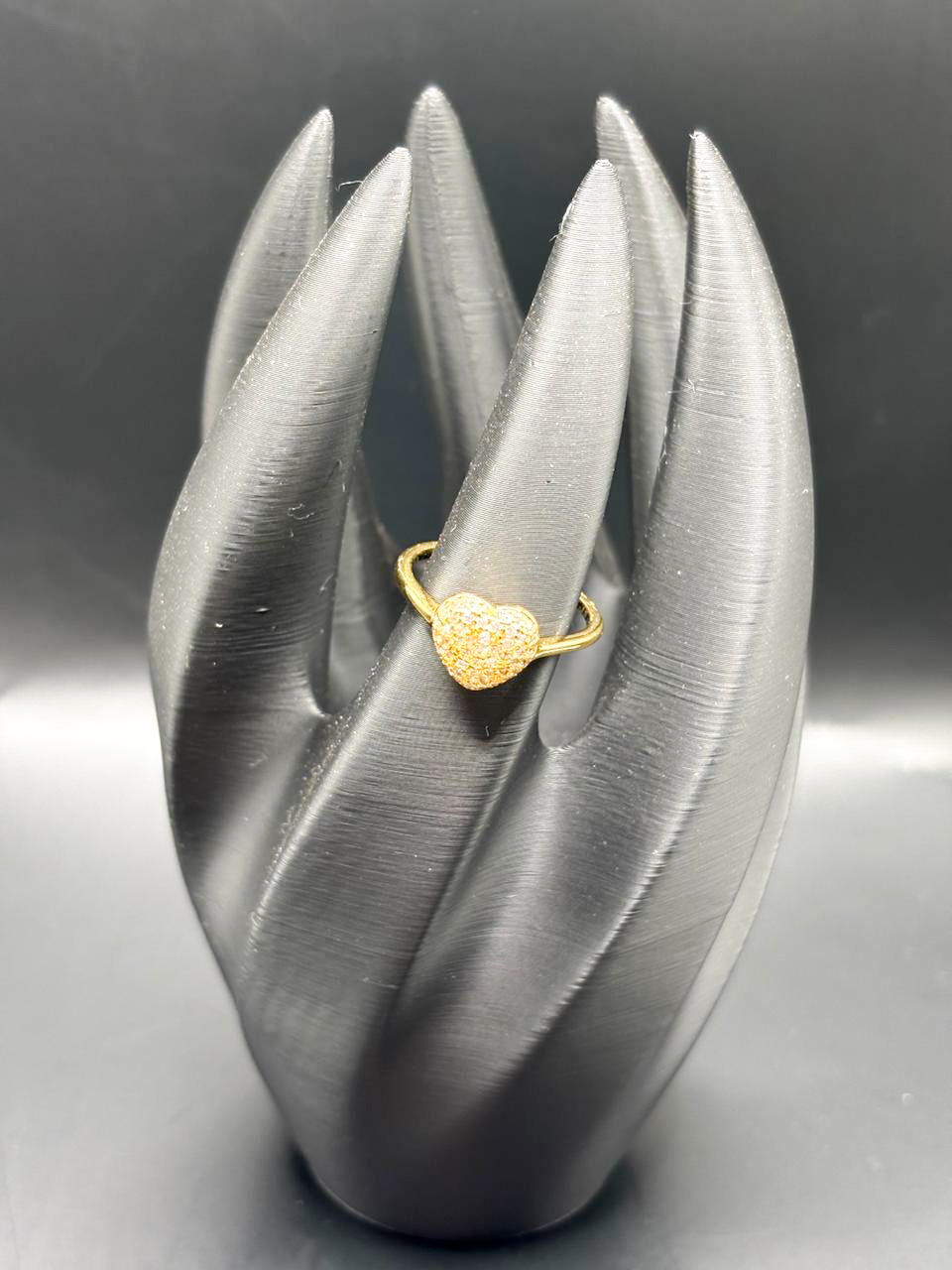 Anel Coração Micro Zircônia Confeccionado em Banho de Ouro Amarelo 18k.