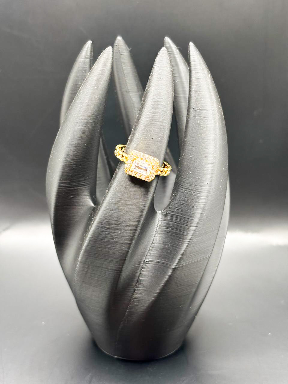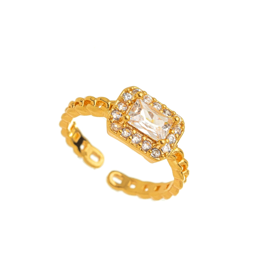 Anel Cravejado Cristal Regulável Confeccionado em Banho de Ouro Amarelo 18k.
