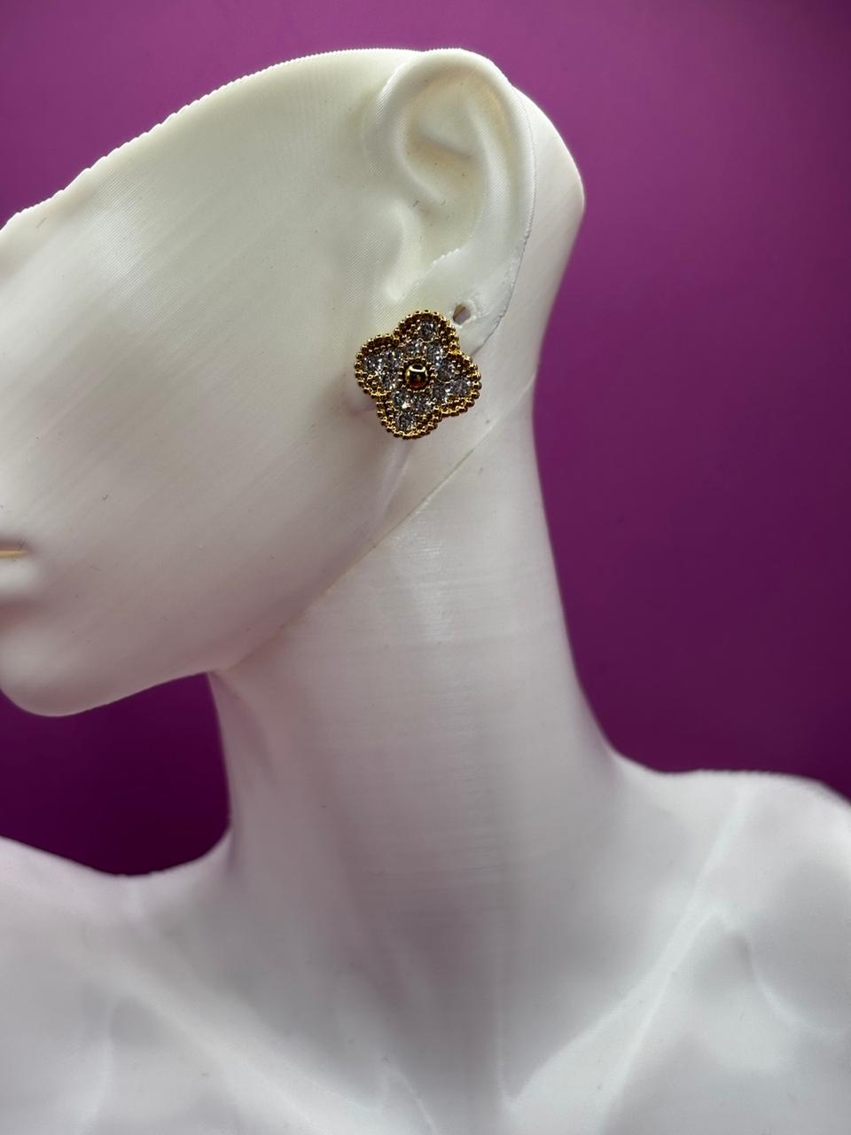 Brinco Flor Micro Zircônia Dourado – (Código do produto L38Ex)