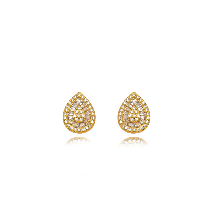 Brinco Coração Cravejado Confeccionado em Banho de Ouro Amarelo 18K
