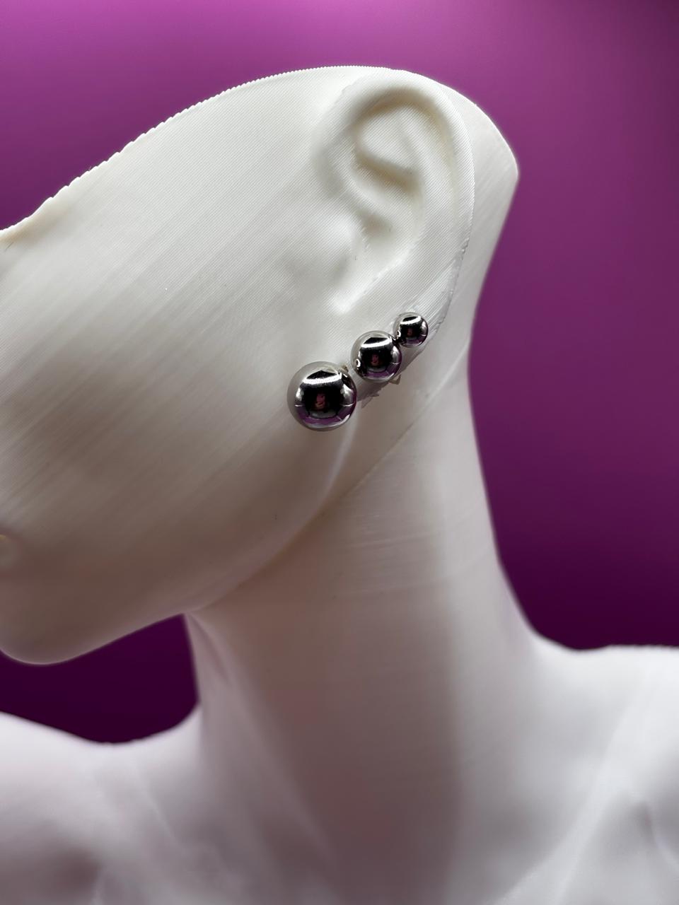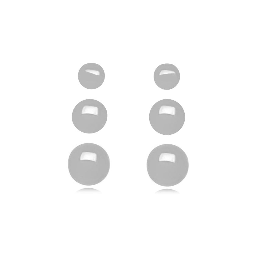 Brinco Trio Bolas Lisas Confeccionado em Banho de Ródio Branco.