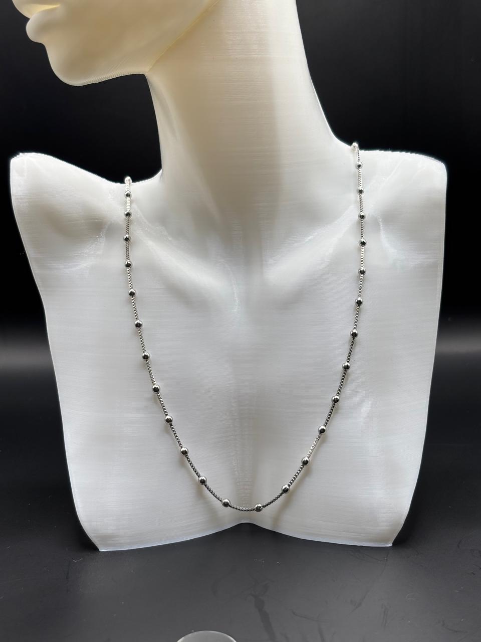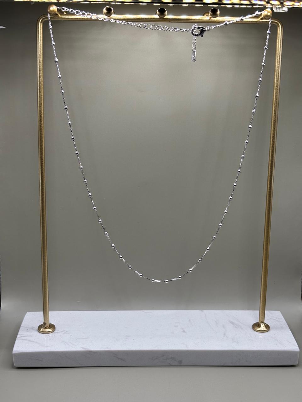 Colar Bolas Lisas Confeccionado em Banho de Ródio Branco.